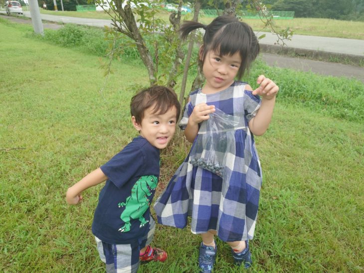 子供達に ブルーベリーの摘み放題のプレゼント。