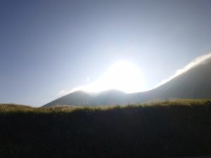 朝日をバックに意気揚々と、、医療センターまで。
