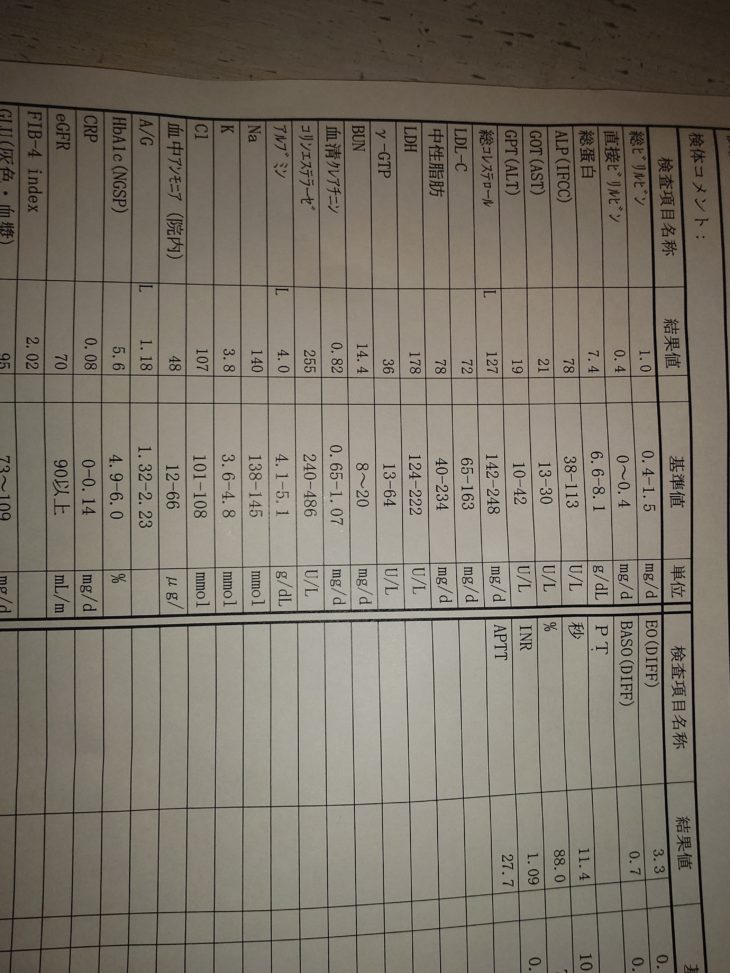 血液検査のHi&lowの、、Hが一つもない健常者以上良質な血液でした。