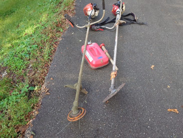 定休日の今日は、、一日中、、本職の、、、草刈り爺さんで 、前庭を全部、、刈り上げました。