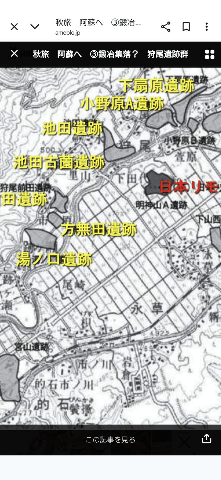 南阿蘇村の環濠集落を見て廻ったので、今日は阿蘇市の遺跡を探索。