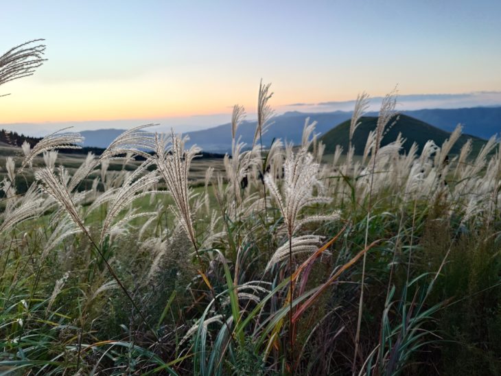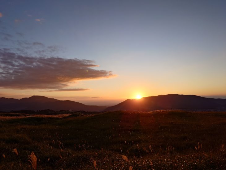 天気が良かったので 夕陽を撮りに米塚まで登った。