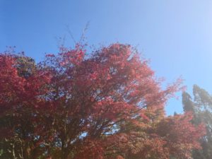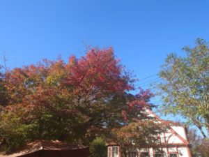我が家の前庭の紅葉も、、今朝の冷え込みで、、色づきました。