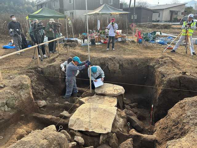 諏訪の原遺跡で 九州最大の石棺墓が発見された模様。