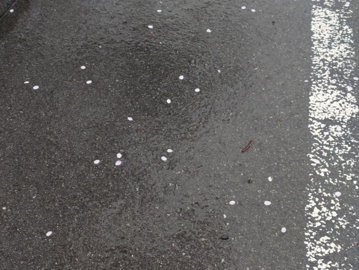 道路には、、散った花びらが、、