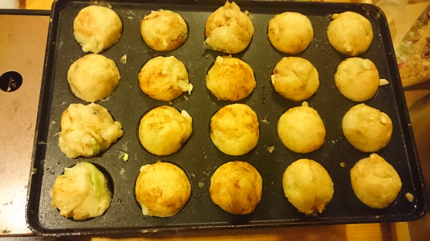 我が家の女性陣は、、、たこ焼きを丸くするのが、、超一流です、、、。